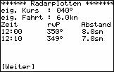 Eingabe des eigenen Kurses und der eigenen Fahrt sowie von zwei Peilungen