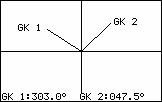 Dann werden die zwei möglichen Lösungen berechnet (Relativbewegung knickt nach rechts oder links ab)Für jede der beiden Möglichkeiten wird angegeben: