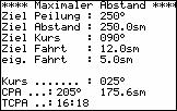 Vorgegebener neuer Eigenkurs berechnet die neue Relativbewegung sowie den CPA